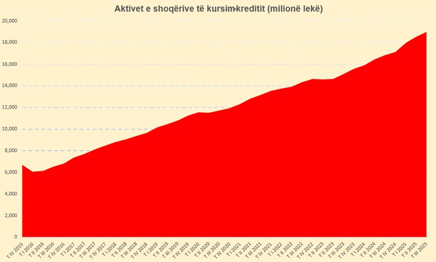 Tregu i shoqërive të kursim-kreditit (SHKK) ka shënuar rritje dyshifrore për nëntë muajt e parë të këtij viti. Sipas të dhënave nga Banka e Shqipërisë, totali i aktiveve të tregut në fund të shtatorit arriti vlerën e 19 miliardë lekëve ose pothuajse 197 milionë eurove.