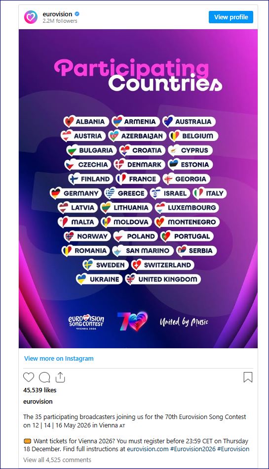 Spanja, Irlanda, Holanda, Sllovenia dhe Islanda janë tërhequr. Bullgaria, Rumania dhe Moldavia po rikthehen pas pushimi