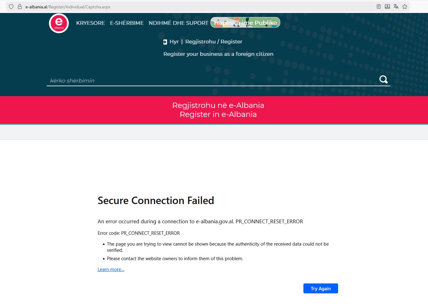 Në orën 14.00 nëse hap faqen e E-Albania, faqja hapet normalisht, por nëse kërkon të bësh një shërbim, faqja del e padisponueshme.