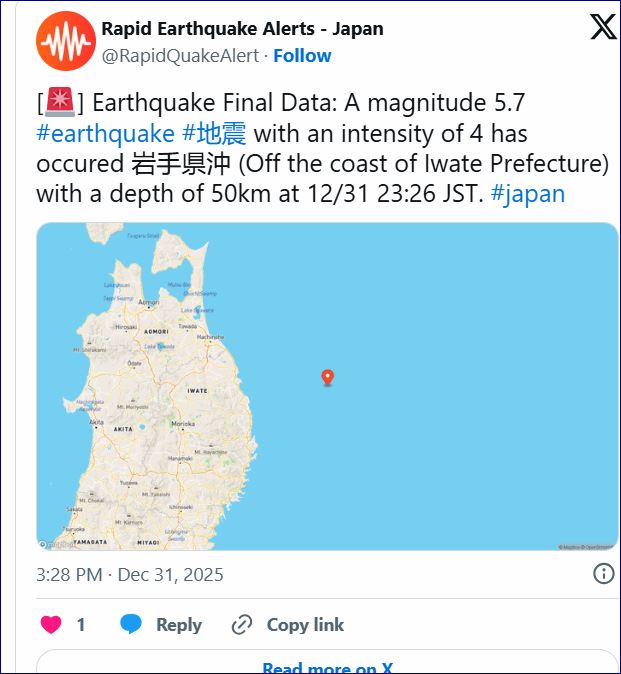 Lekundjet panikosen qytetarët, të cilët kanë lënë banesat e tyre dhe kanë dalë në rrugë, ndërsa festonin ardhjen e Vitit të Ri.