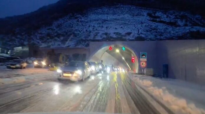 Këto janë pamjet që vijnë nga Tuneli i Murrizit, ku këtë pasdite reshjet e dendura të borës kanë shkaktuar bllokime të shumta dhe qindra mjete kanë mbetur të bllokuara.