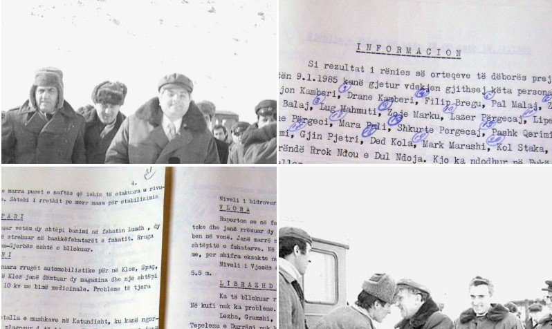 RAPORT- INFORMACIONI SEKRET I MINISTRISË SË BRENDSHME, MBI MOTIN E KEQ ME RESHJE TË DENDURA SHIU DHE DËBORE QË PËRFSHIU TË GJITHË SHQIPËRINË MË 7 JANAR 1985 DHE DËMET E SHKAKTUARA NË RRETHE TË NDRYSHME NGA PËRMBYTJET, BLLOKIMET E RRUGËVE NACIONALE, ORTEQET E DËBORËS ETJ.