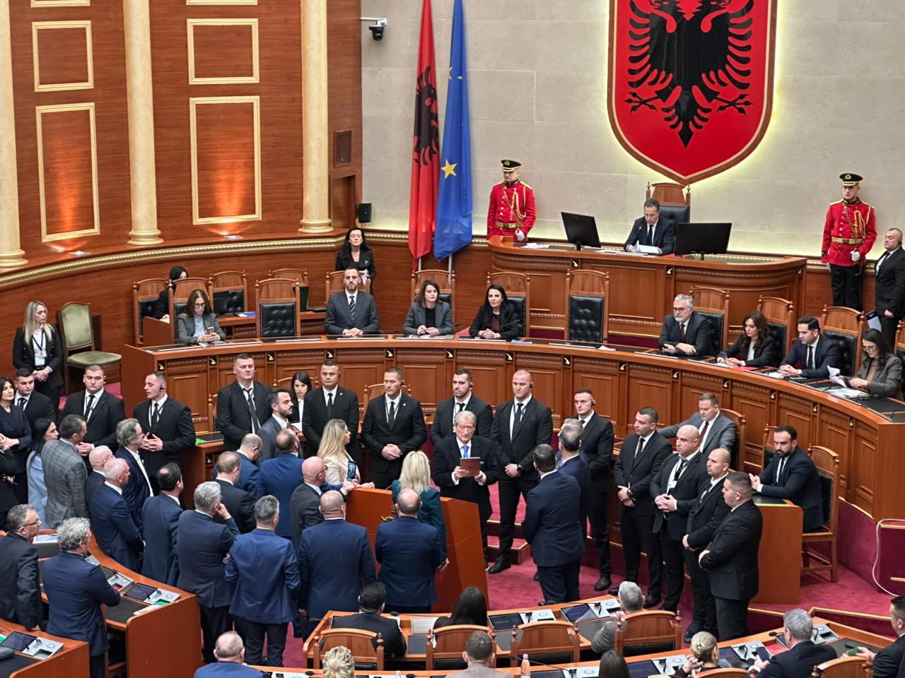 Pas nderimit të himnit kombëtar nga të gjithë ligjvënësit të majtë e të djathtë, këta të fundit u ngritën në këmbë dhe bllokuan foltoren.