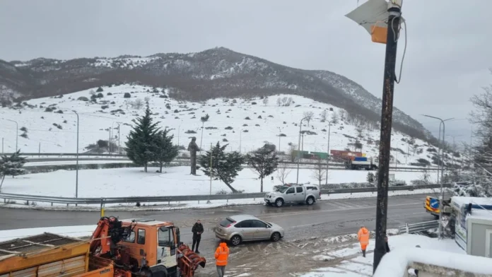 Në pikën e kalimit kufitar të Qafë Thanës, mësohet se është ndaluar qarkullimi i kamionëve për shkak se po punohet me borëpastruese në segmentin hyrës drejt Maqedonisë së Veriut.