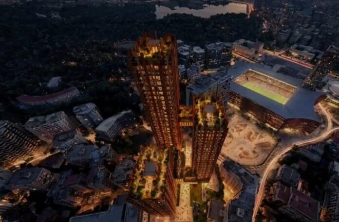 Projekti i studios XDGA shoqërohej me një komponent shtesë: Investitori privat që do të merrte përsipër realizimin, përfitonte të drejtën për të shfrytëzuar 5,219 m2 truall të ish-vilave gjermane për ndërtimin e një objekt me sipërfaqe deri në 60,000 m2 – praktikisht një kullë mbi 20 kate.
