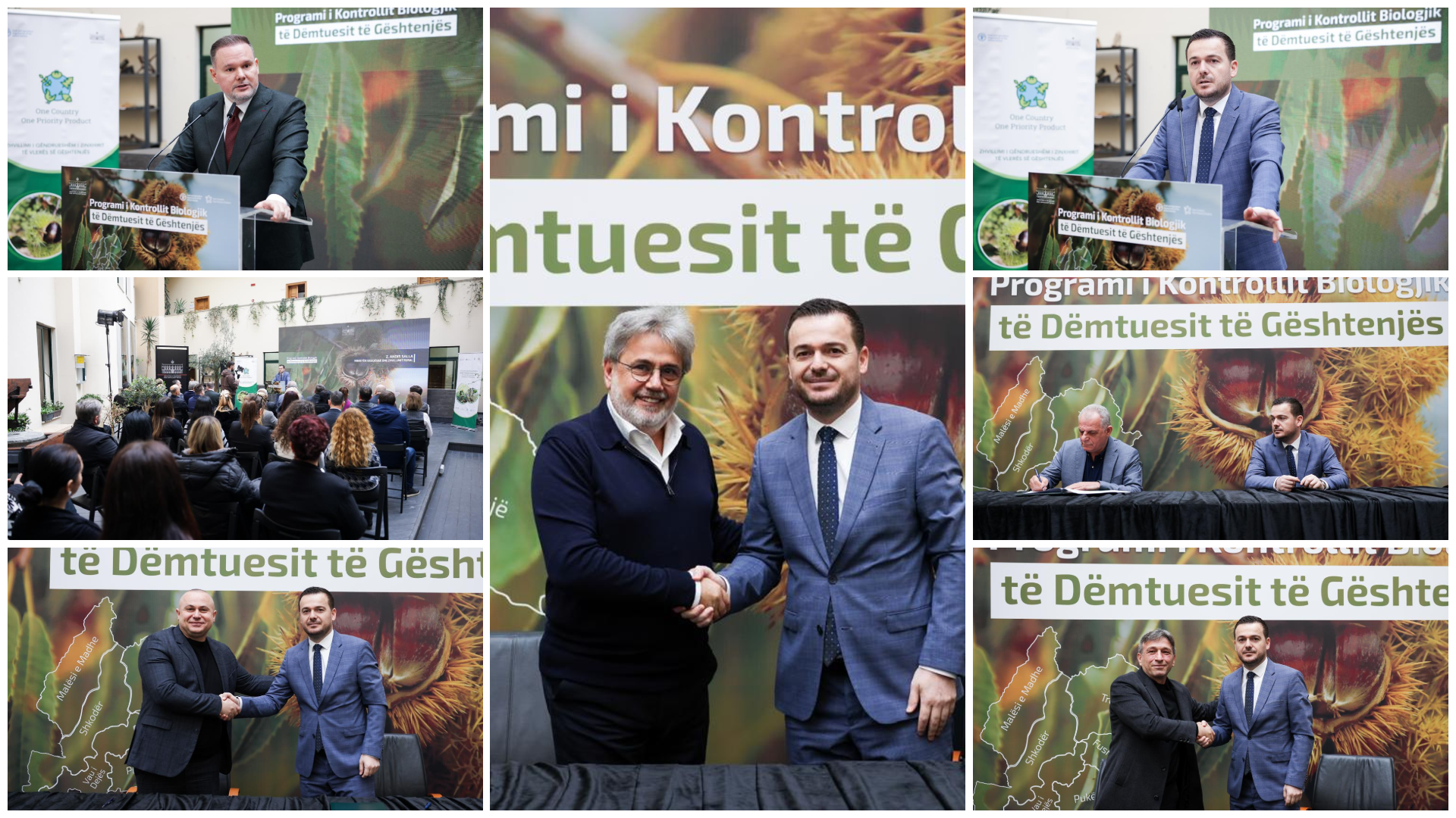 “Sot firmosëm marrëveshjet e bashkëpunimit me bashkitë Shkodër, Tropojë, Malësi e Madhe, Pukë, Fushë-Arrëz dhe Vau i Dejës, për zbatimin e programit të kontrollit biologjik të dëmtuesit të gështenjës. Po ndërtojmë një model të ri bashkëpunimi mes qeverisjes qendrore dhe pushtetit vendor për të mbrojtur një aset si masivet e gështenjës, që sot shtrihen në rreth 10 mijë hektarë dhe përbëjnë burim të rëndësishëm të ardhurash për zonat veriore,” u shpreh Ministri Salla.