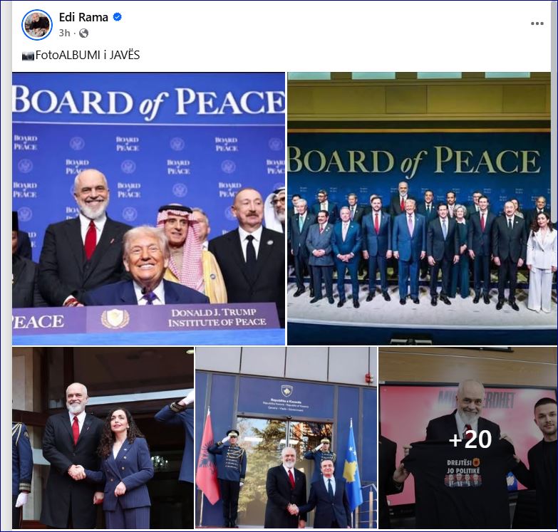 Gjithashtu, Rama ka ndarë momente edhe nga mbledhja e Bordit të Paqes në Uashington, ku deklaroi se Shqipëria në këtë mbledhje është krenare dhe se prezantohet si themeluese e Bordit.