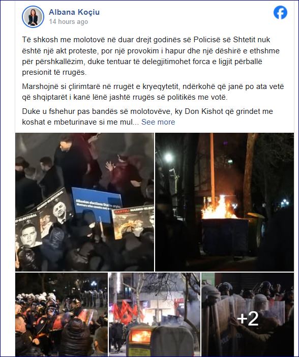“Të shkosh me molotovë në duar drejt godinës së Policisë së Shtetit nuk është një akt proteste, por një provokim i hapur dhe një dëshirë e ethshme për përshkallëzim, duke tentuar të delegjitimohet forca e ligjit përballë presionit të rrugës.