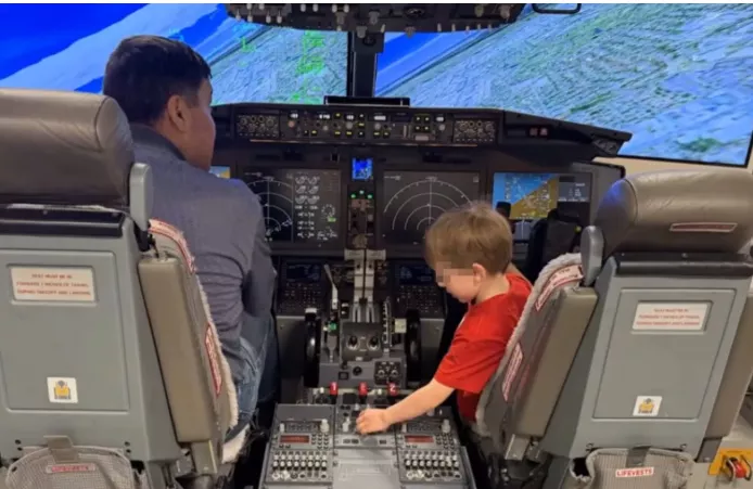 Në një festë familjare, bashkëshortja e një piloti të Southwest vuri re pasionin e djalit për avionët dhe i propozoi nënës së tij që ai të takonte bashkëshortin e saj, i cili punon si pilot në kompani. Piloti e vizitoi vogëlushin në shtëpi dhe, përveç dhuratave të tjera, i dhuroi edhe një manual të vërtetë trajnimi që përdoret nga kompania.