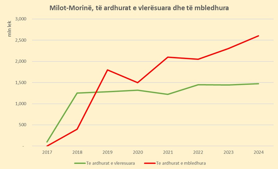 Në vitin 2024 pragu i të ardhurave ishte 1,47 miliardë lekë, por në vërtetë janë arkëtuar 1,3 miliardë lekë më shumë nga të cilat 40 për qind ose 452 milionë lekë shkojnë për autoritetin kontraktor, dhe pjesa tjetër 60% ose 678 milionë lekë shkon për koncesionin.