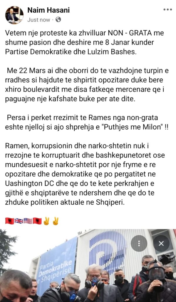 Me 22 Mars ai dhe oborri do te vazhdojne turpin e rradhes si hajdute te shpirtit opozitare duke bere xhiro boulevardit me disa fatkeqe mercenare qe i paguajne nje kafshate buke per ate dite.