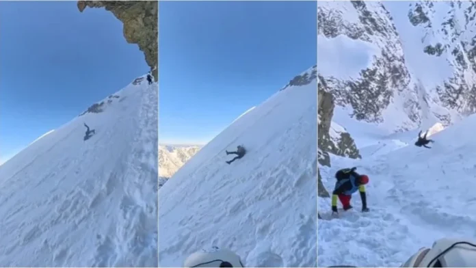 Për habinë e të gjithëve, pas rrokullisjes dramatike, alpinisti u ngrit në këmbë. Ankesa e tij e vetme? Një dhimbje e lehtë në gishtin e vogël të dorës.