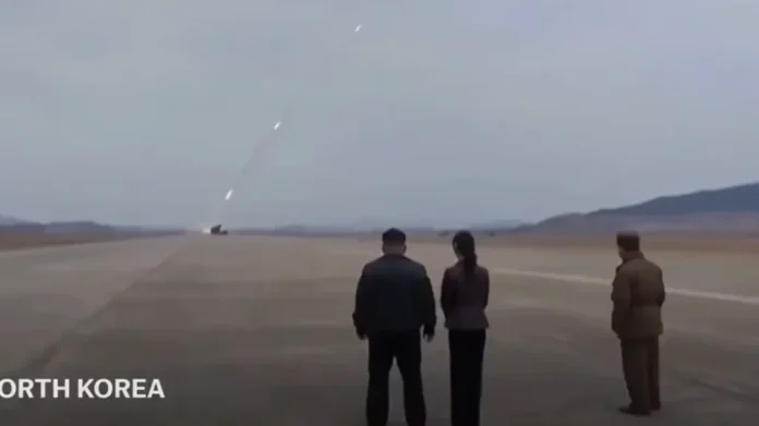 Udhëheqësi i Koresë së Veriut, Kim Jong-un, ka sfiduar sërish komunitetin ndërkombëtar me një provë masive të forcës ushtarake. I shoqëruar nga vajza e tij adoleshente, e cila tashmë shihet hapur si pasardhësja e tij politike, Kim ndoqi nga afër stërvitjen me raketahedhës super precizë 600 milimetrash në brigjet lindore të vendit.