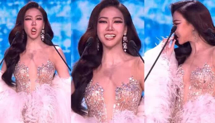 Kandidatja Kamolëan Chanago, përfaqësuese e provincës Pathum Thani, ishte duke bërë prezantimin e saj kur fasetat dentare u liruan papritur dhe ranë.