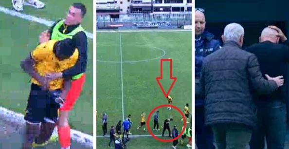 Një prej tyre goditi në kokë trajnerin Magani, i cili po mundohej të qetësonte situatën, duke tensionuar edhe këtë të fundit.
