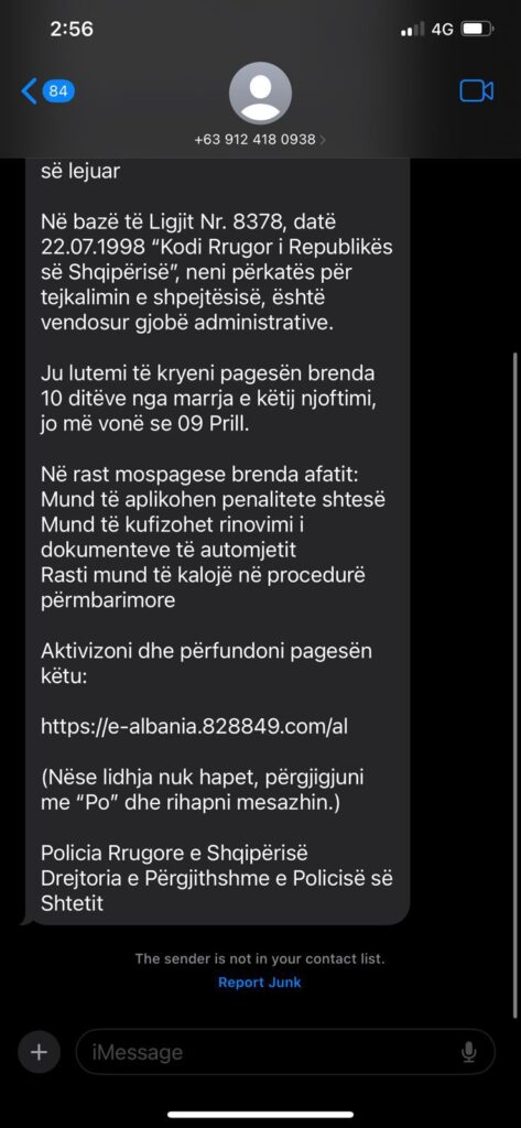 Mesazhet mashtruese paraqiten si njoftime zyrtare nga e-Albania për pagesën e gjobave të automjeteve dhe përmbajnë linke të falsifikuara që drejtojnë përdoruesit në faqe të rreme, me qëllim përvetësimin e të dhënave personale dhe bankare. Policia thekson se këto mesazhe nuk kanë lidhje me e-Albania apo institucionet shtetërore.