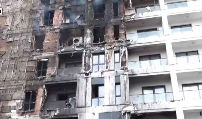 Zjarri ka përfshirë plotësisht pjesën e jashtme të ndërtesës, duke djegur fasadën me dy shtresa dhe duke dëmtuar edhe strukturën e brendshme në disa pjesë.